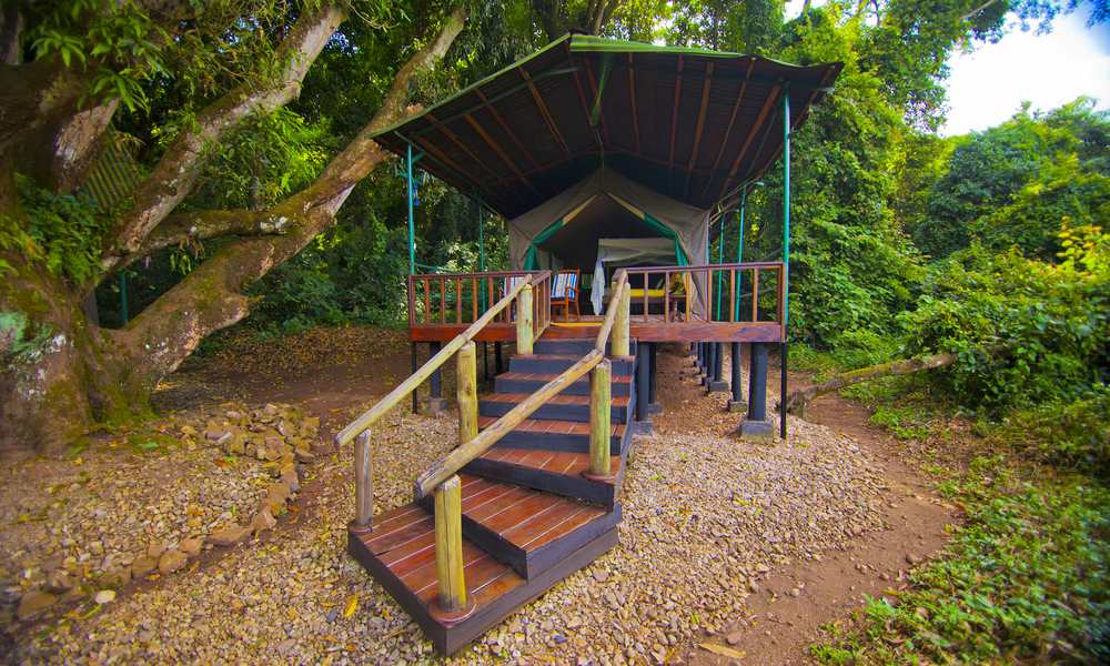 Spacious Safari tents, offering comfort and simplicity, are elevated on timber platforms with a private deck overlooking the tranquil forest.